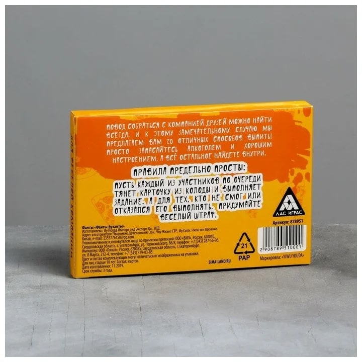 Купить игра для компании "фанты буханты" 20 карт от 100 руб. с доставкой до пункта выдачи в Туймазах. Интернет магазин ДекаМаркет. Оплата при получении.