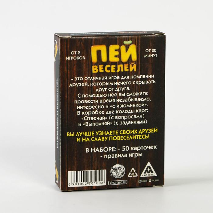 Купить игра для компании "пей веселей" 50 карт от 180 руб. с доставкой до пункта выдачи в Туймазах. Интернет магазин ДекаМаркет. Оплата при получении.